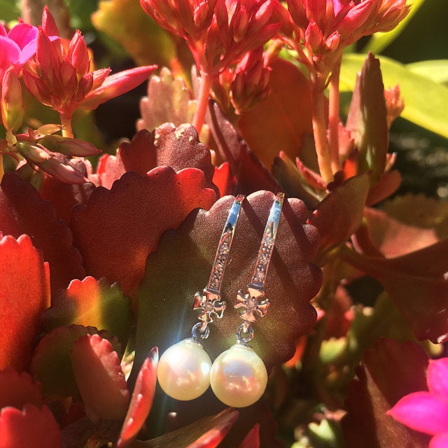 These little guys are absolutely STUNNING! The earrings are beautifully crafted with a lot of shine and sparkle. The care and attention to detail is evident. The pearls have a strong lustre and are beautifully matched. Susanna was lovely to deal with and very communicative. Shipping from Italy to Australia was very quick as well. I will definitely buy from here again, thank you